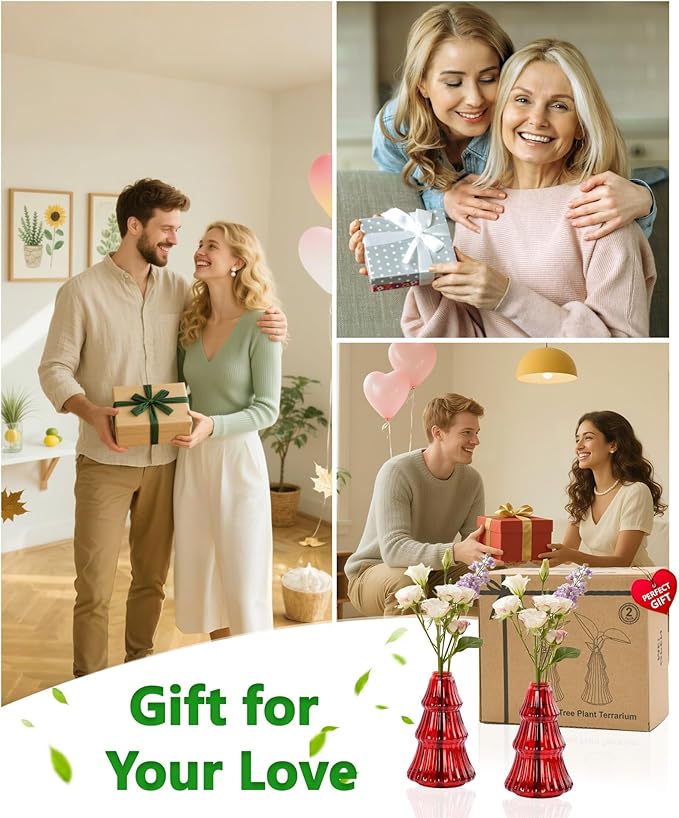 Nacome Christmas Tree Propagation Stations: 2PCS Plant Terrarium Glass Vases for Home Office Decor, for Plant Lovers Women Mom (Red)