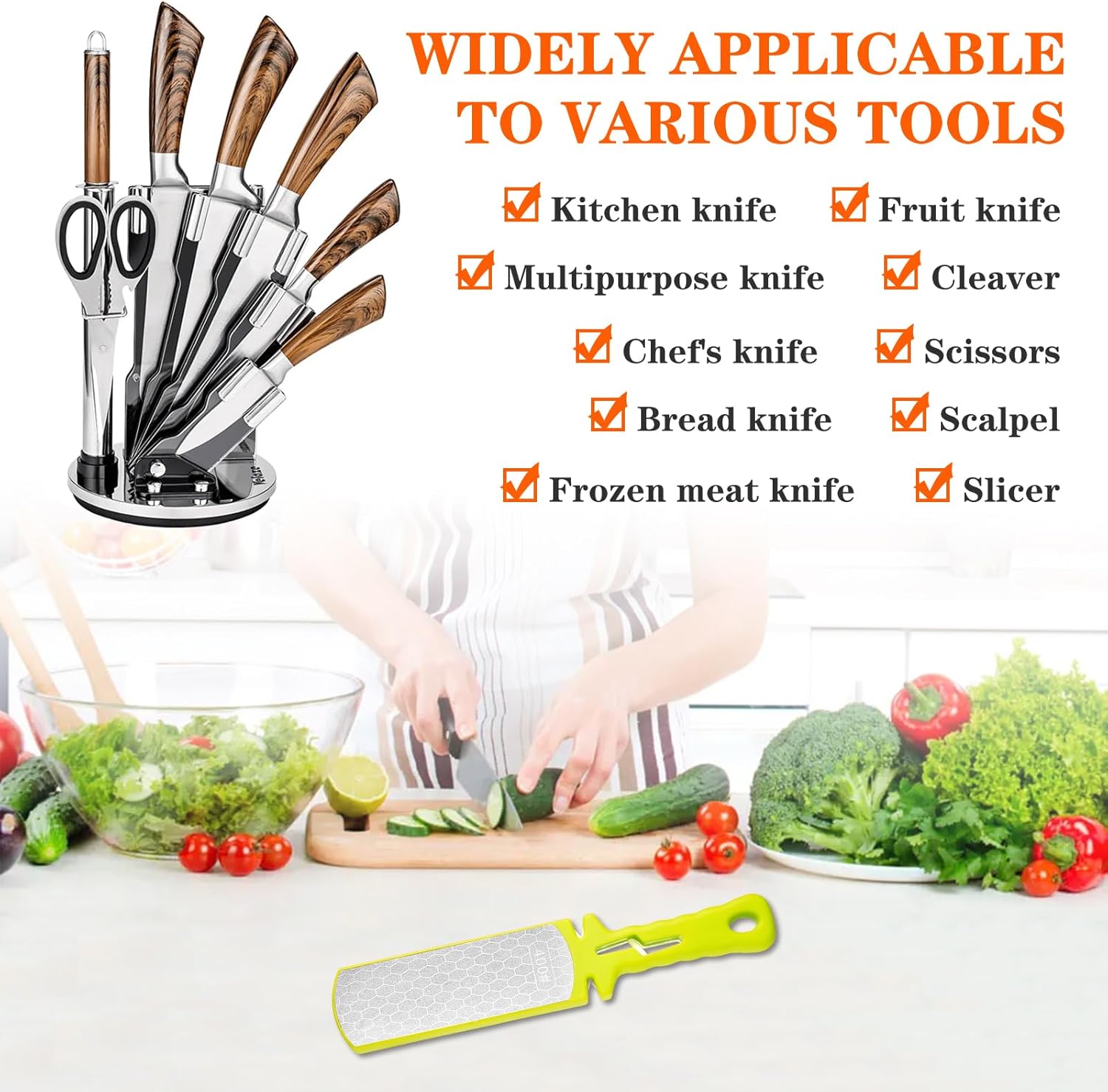 - Convenient to Use:Unlike other whetstones that require soaking and waiting a long time, with our diamond sharpener stones you can sharpening immediately without any preparation! If you need to sharpen knife continuously for a long time, please sprinkle some water continuously to cool it down and prevent overheating from damaging the blade. Dry the sharpening stone water to prevent rust after the work.