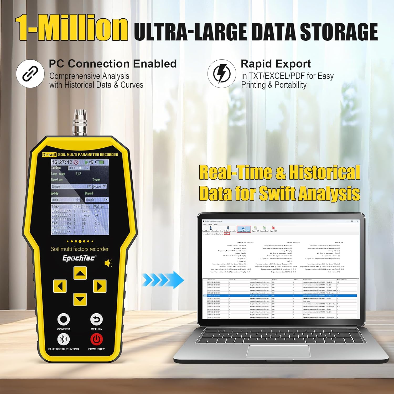- 1-Million Data Storage Capacity: Easily check real-time and historical data. Connect to a computer to view data curves, with TXT/PDF/EXCEL export formats for convenient analysis