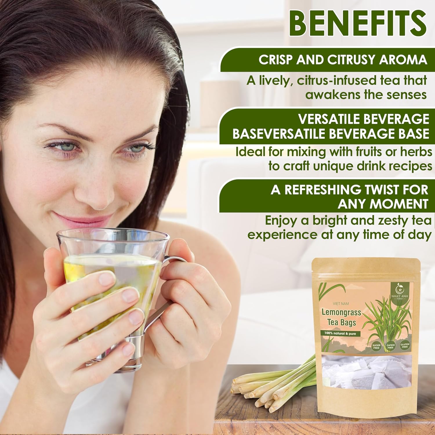 NHAT ANH FARM - Premium Lemongrass Tea Bags, 100 Lemongrass Tea Bags, 100% Natural Dried Lemongrass, Naturally Sweet Herbal Tea, Sugar-Free, Caffeine-Free, No Additives