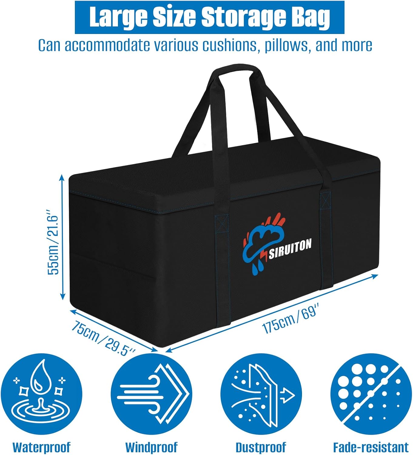 - 【Full Protection】 Outdoor Cushion Storage Bag Made with 600D PU-lined Oxford fabric, it effectively prevents cushions from being gnawed by rodents. Shields against rain, dust, snow, and UV rays, preventing fading from summer rain and sun exposure. Durable and built for long-term use.