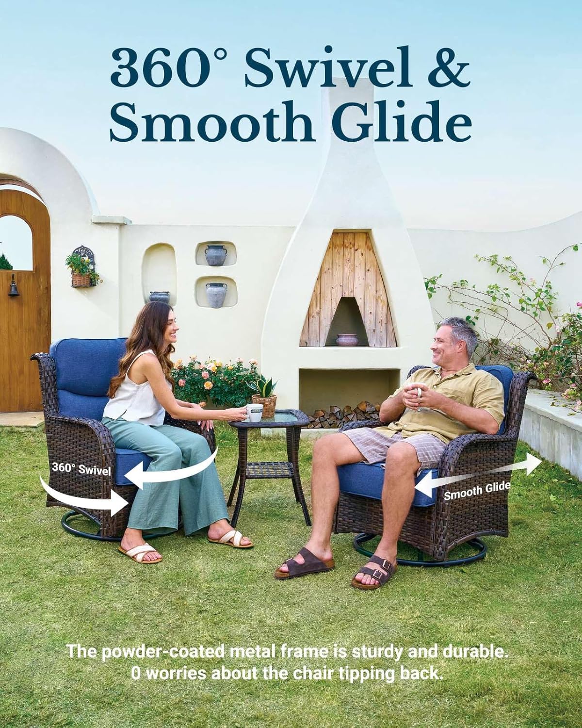 HILLGA Luxury Patio Furniture Set with 6-Inch Thick Cushions, High Back Outdoor Swivel Rocker Chairs and Table, 6-Piece All Weather Conversation Set for Porch Deck Balcony Yard, Blue (V3)