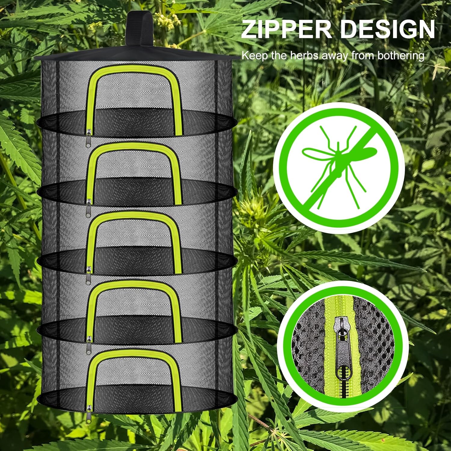 - U-Shaped Zipper Design: Compared to a straight zipper, the wider and higher opening design makes it easier to put and take out harvested items from the clothes rack. In addition, we have improved the quality of zippers and enhanced the comfort of using dried herbs