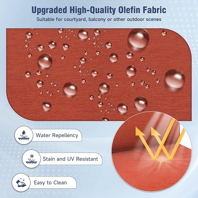 - High Rebound Foam & Thoughtful Details: Filled with a full piece of 28D high-resilience foam, the cushions offer exceptional softness and long-lasting support. Smart design elements include adjustable fixing straps for a secure fit, hidden zippers to prevent water seepage, piped edges for a refined finish, and a convenient handle for easy one-handed transport