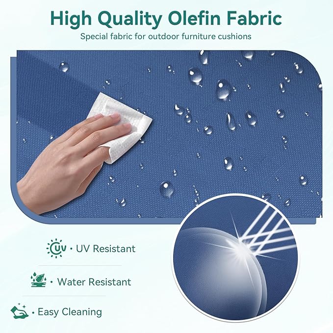 - Waterproof & Fade Resistant: Made from high-quality polyester Oxford fabric with double-layer waterproof treatment, these outdoor patio cushions provide excellent water resistance—ideal for rainy days or unexpected spills. They also offer reliable fade resistance, helping maintain their vibrant color over time