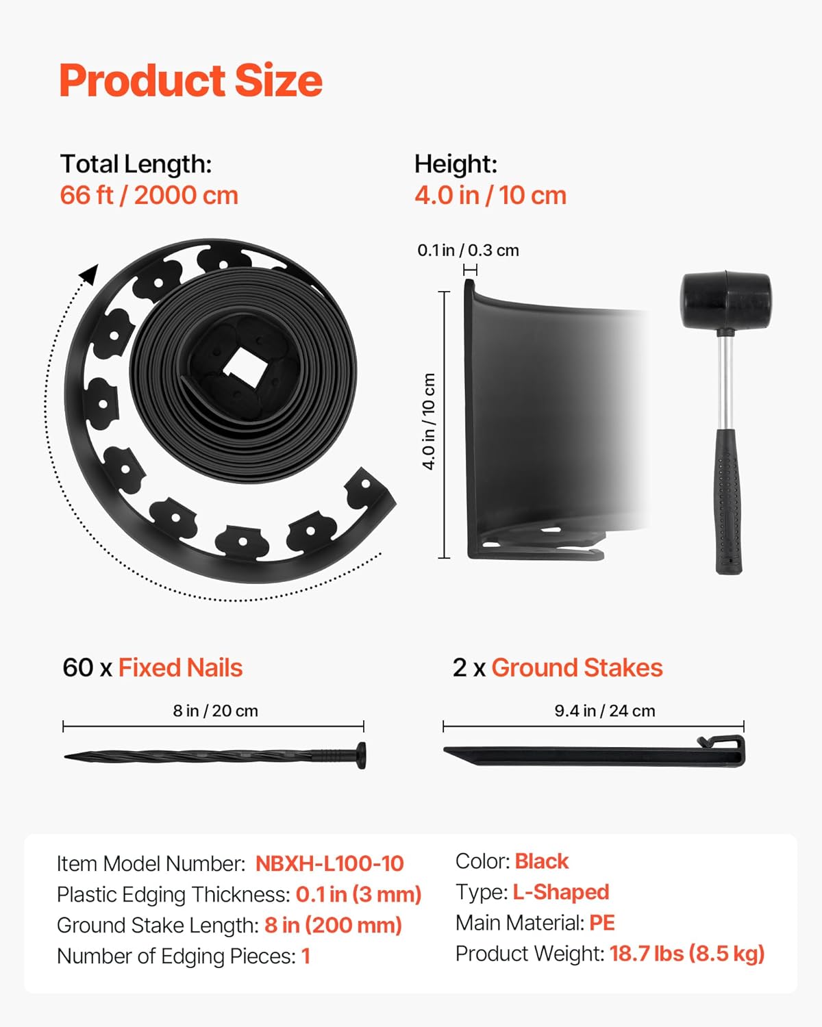 - 66 ft x 4 in Garden Edging: This 66 ft flexible plastic garden edging is ideal for large yards, garden beds, and extended landscape borders. The 4 in raised height helps block invasive grass roots and keeps edges clean and defined.