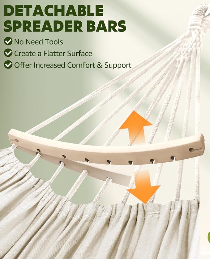 Chihee Hammock for Stand 9.8ft x 4.9ft Soft Cotton Hammock Holds Up to 660lbs Portable Tree Hammocks with Detachable Spreader Bar Pillow 2 Strong Webbings 2 Carabiners Patio Garden Indoor Outdoor