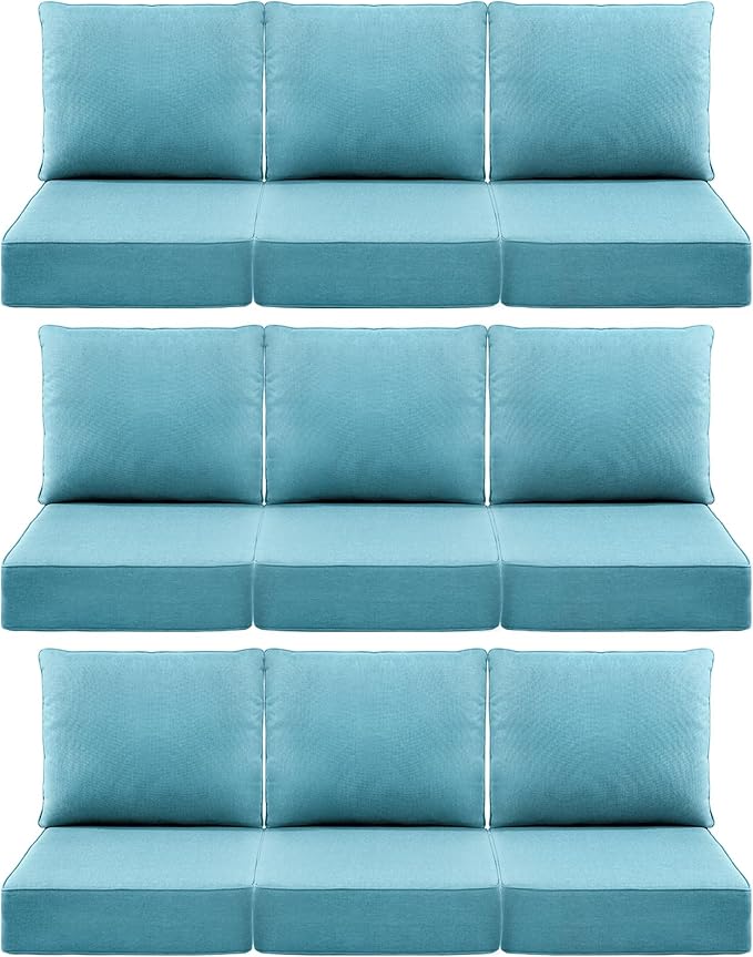 Luxury 6" Outdoor Cushions for Patio Furniture, 24x24x6" Thick Seat Cushion Set of 9, Fade Resistant Couch Chair Replacement Cushions High Density Deep Wicker Chair Cushion w/ Removable Cover, Teal