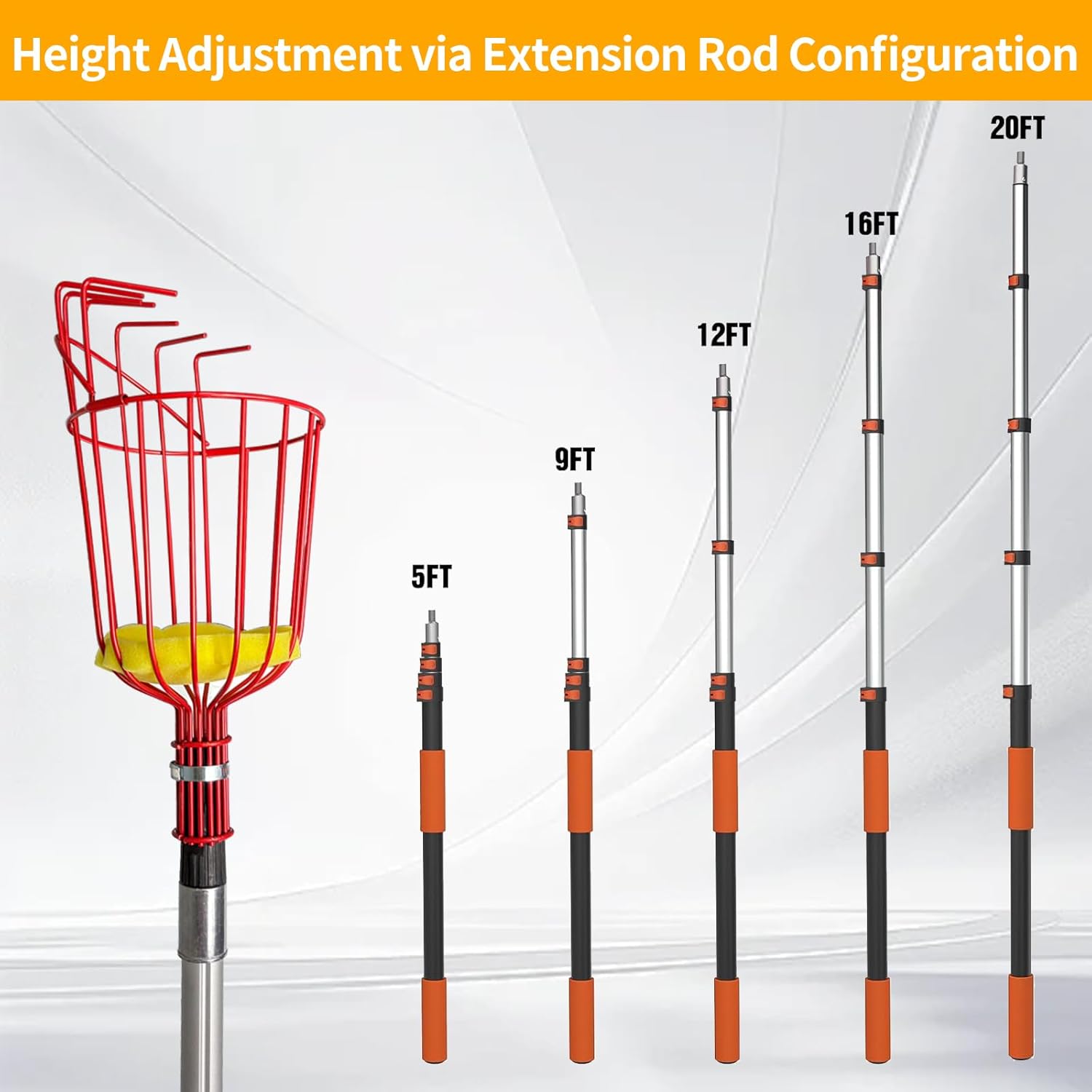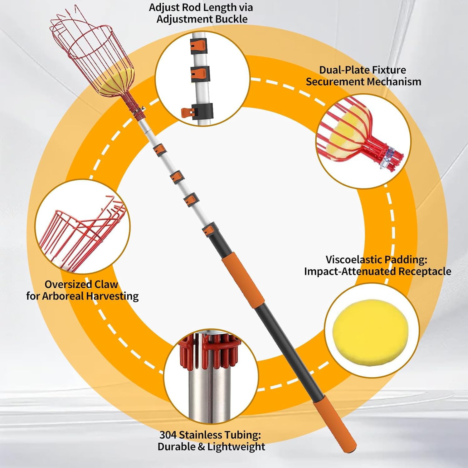 - 【Adjustable Pole for Versatile Harvesting】Easily adjust the length of this Reach Fruit Picker pole tool to suit different tree heights and fruit types, from low-hanging pears to high acorns or mangoes. Customize the length for optimal comfort and control.