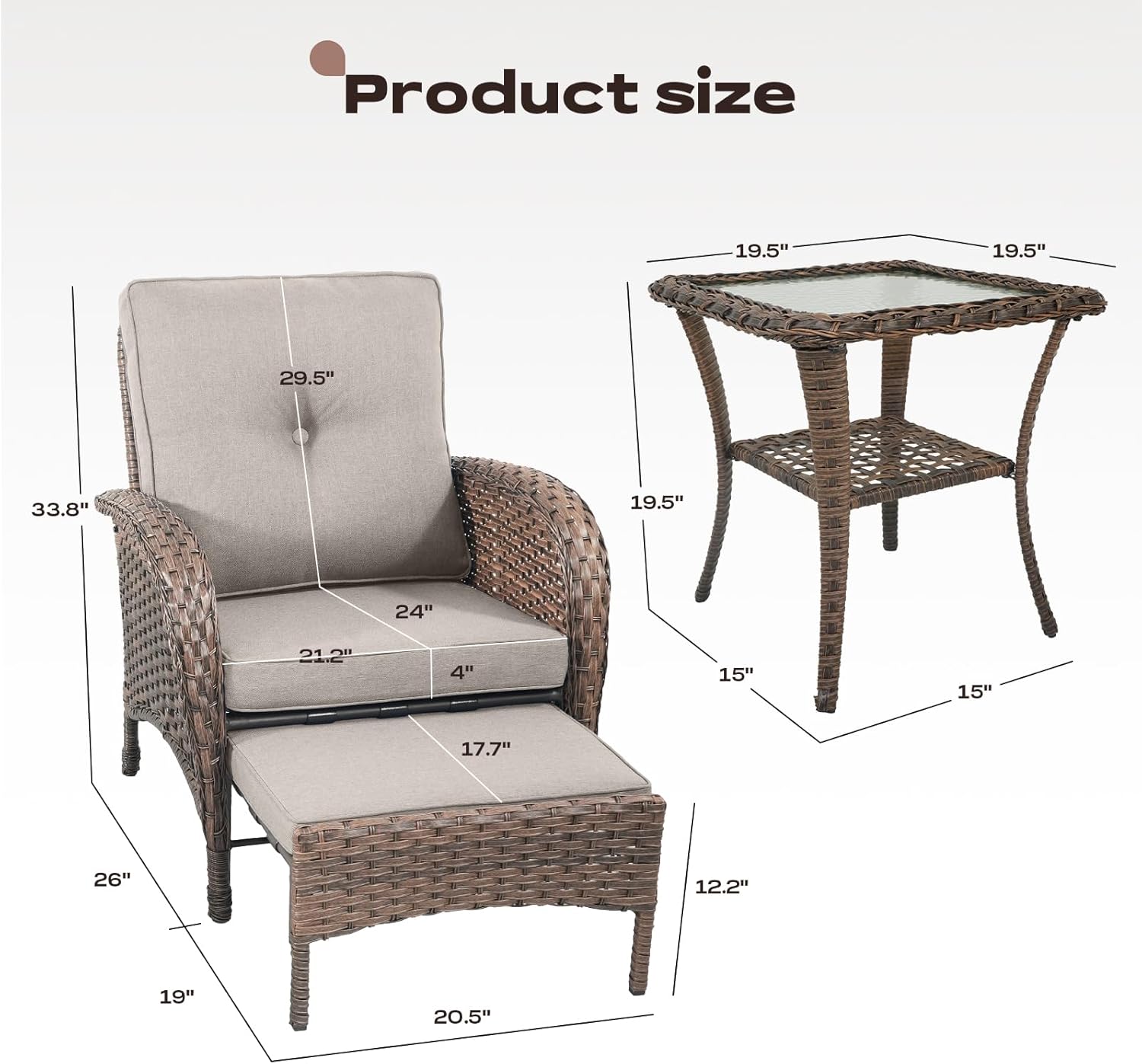 - Hidden Footrest Ottoman: Stretch out and relax instantly! Pulls out for comfort, stores under your chair effortlessly. Maximize balcony space, maintain tidy elegance.