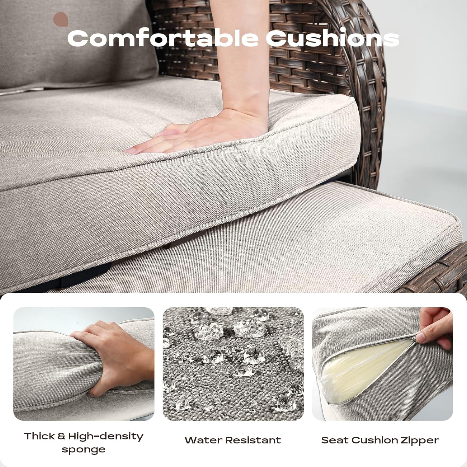 - Built to Last : This outdoor patio conversation set is constructed with hand woven with all-weather PE Rattan & powder-coated steel frame to make the outdoor seating set sturdy and durable for a long lasting outdoor use.