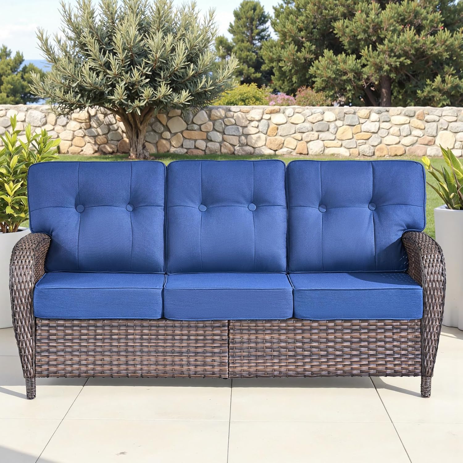 - Color : Brown Rattan | Blue Cushions