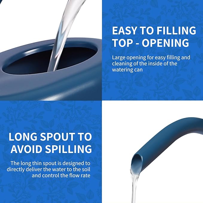 - [Long Precision Spout] Our watering can for indoor plants comes with a long, narrow spout that effortlessly reaches deep into plant roots, even under dense leaves. It delivers water precisely to target areas, avoiding splashing or overwatering—perfect for indoor plants, bonsai, and hard-to-reach spots in gardens. The fixed spout (non-removable) ensures stable water flow, making every watering efficient and mess-free.