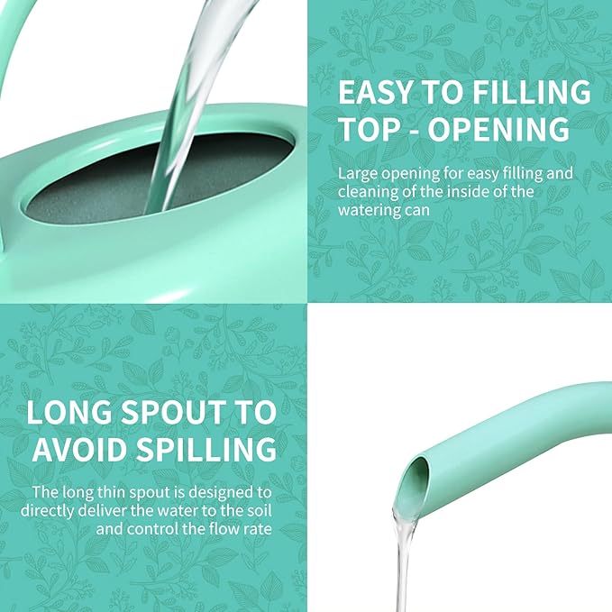 - [Long Precision Spout] Our watering can for indoor plants comes with a long, narrow spout that effortlessly reaches deep into plant roots, even under dense leaves. It delivers water precisely to target areas, avoiding splashing or overwatering—perfect for indoor plants, bonsai, and hard-to-reach spots in gardens. The fixed spout (non-removable) ensures stable water flow, making every watering efficient and mess-free.