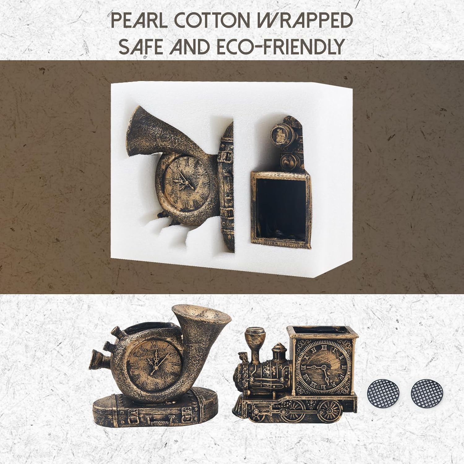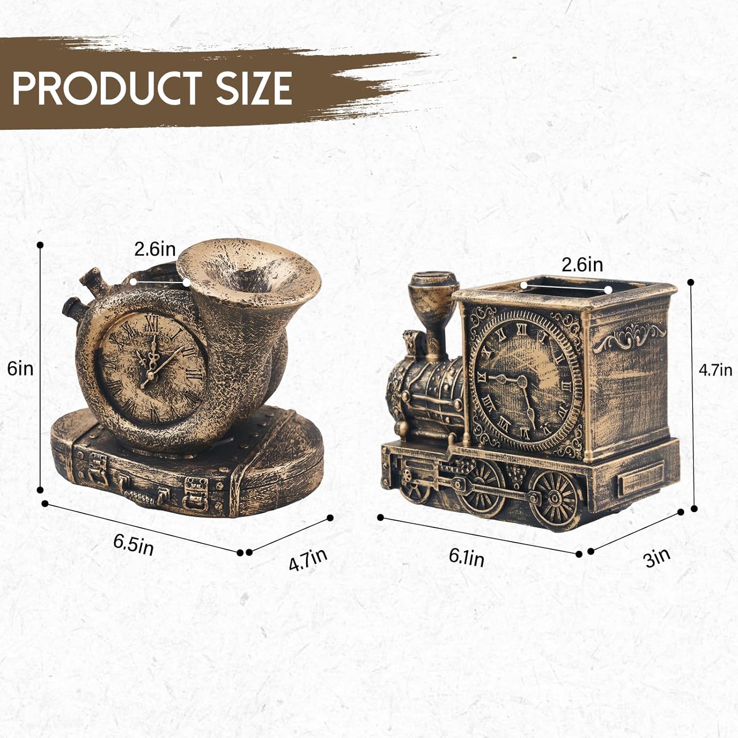 Retro-Style Succulent Pots with Drainage, Indoor/Outdoor Planter, Nostalgic Cactus/Bonsai Garden Pots for Home Decoration and Office Desk Decoration, Vintage Artwork (2 Piece Set) (Bronze-Colored)