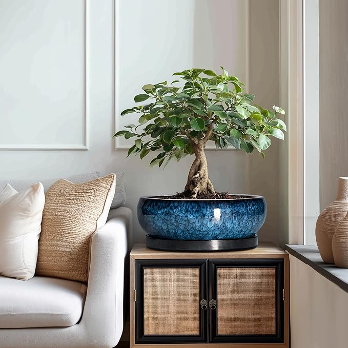- Ceramic Glazed Design: This bonsai pots are fired at high temperatures with a refined glazed finish, offering durability and an elegant look that enhances your plants(ONLY CERAMIC PLANTER IS INCLUDED, NOT PLANTS INCLUDED)