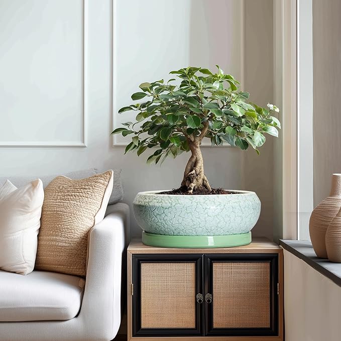 - Ceramic Glazed Design: This bonsai pots are fired at high temperatures with a refined glazed finish, offering durability and an elegant look that enhances your plants(ONLY CERAMIC PLANTER IS INCLUDED, NOT PLANTS INCLUDED)