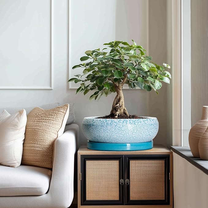 - Ceramic Glazed Design: This bonsai pots are fired at high temperatures with a refined glazed finish, offering durability and an elegant look that enhances your plants(ONLY CERAMIC PLANTER IS INCLUDED, NOT PLANTS INCLUDED)