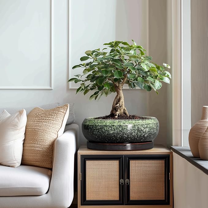 - Ceramic Glazed Design: This bonsai pots are fired at high temperatures with a refined glazed finish, offering durability and an elegant look that enhances your plants(ONLY CERAMIC PLANTER IS INCLUDED, NOT PLANTS INCLUDED)