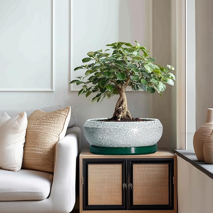 - Ceramic Glazed Design: This bonsai pots are fired at high temperatures with a refined glazed finish, offering durability and an elegant look that enhances your plants(ONLY CERAMIC PLANTER IS INCLUDED, NOT PLANTS INCLUDED)