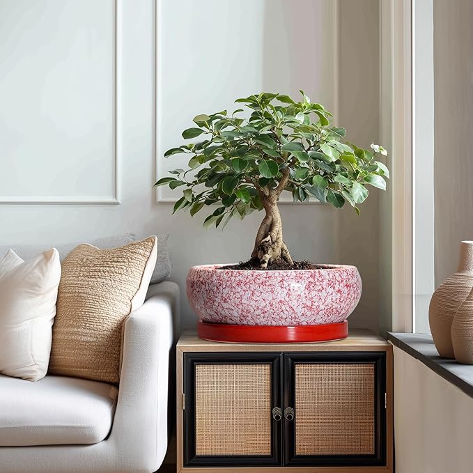 - Ceramic Glazed Design: This bonsai tree pots are fired at high temperatures with a refined glazed finish, offering durability and an elegant look that enhances your plants(ONLY CERAMIC PLANTER IS INCLUDED, NOT PLANTS INCLUDED)