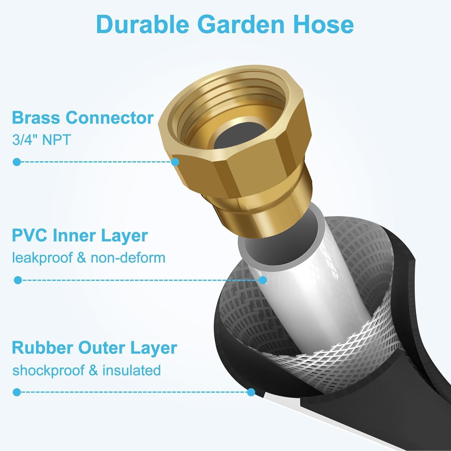 - Enduring Quality, Ultimate Protection - The retractable hose reel stands the test of time with solid shell protection, which against sunlight exposure and animal gnawing. The 3-layer PVC hose is ultra-durable, withstanding up to 120 psi of water pressure. Equipped with a rubber protective sleeve and 3/4" copper metal connects, it guarantees a leak-free performance.