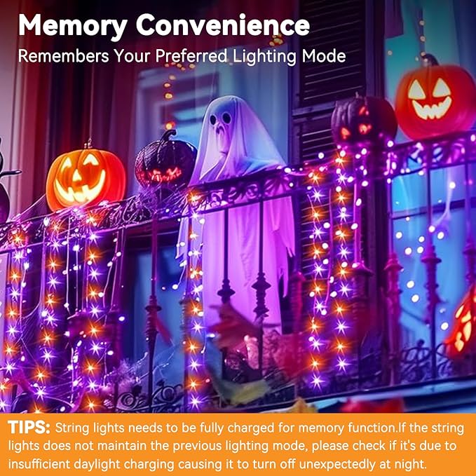 Solar String Lights Outdoor Waterproof 2 Pack Total 66ft 200LED 8 Modes Twinkle Lights Solar Fairy Lights for Patio, Garden Yard Party Tree Christmas Halloween Decoration, Orange + Purple