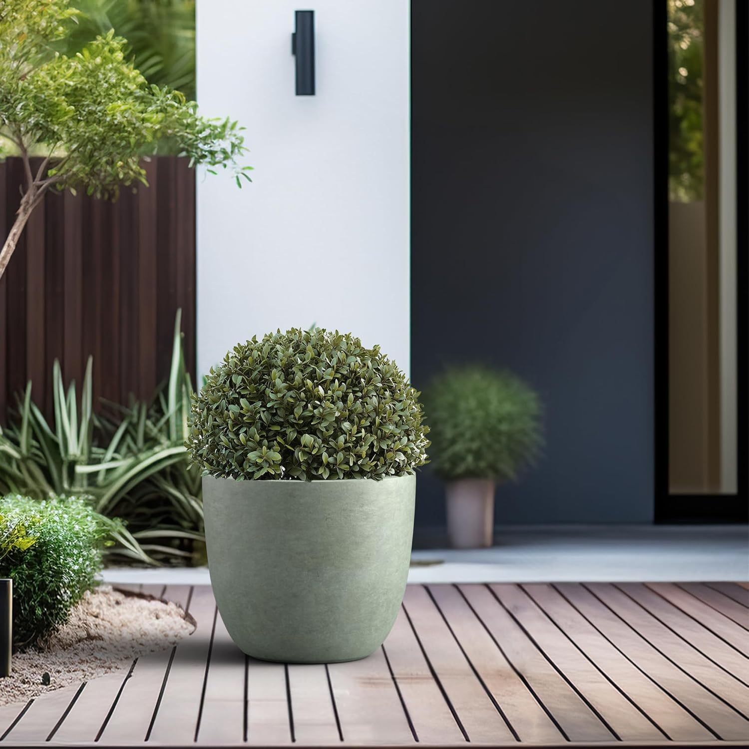 Kante 14 Inch Dia Round Concrete Planter, Indoor Outdoor Large Plant Pot with Drainage Hole and Rubber Plug for Home Patio Garden, Mint Green