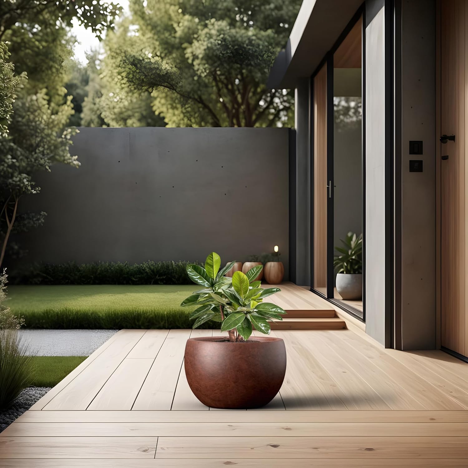 Kante 19.9" Dia Round Concrete Planter, Outdoor/Indoor Large Bowl Plant Pots with Drainage Hole and Rubber Plug for Garden Patio Balcony Home, Rusty