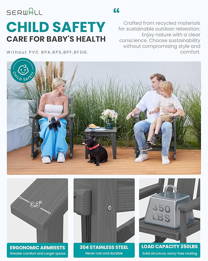 - Smooth Rocking: Enjoy complete relaxation with the SERWALL patio bistro set. Its ergonomic design offers a comfortable and safe rocking experience. This rocking bistro set is perfect for enjoying serene outdoor moments.