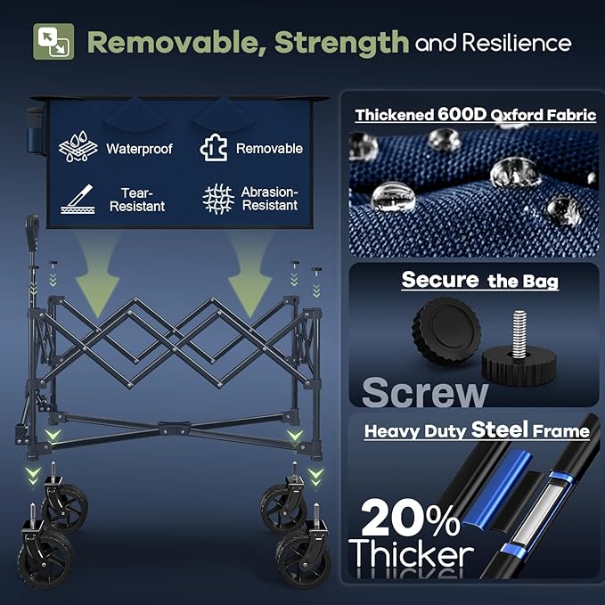 - ใ๐๐๐๐ฏ๐ฒ ๐๐ฎ๐ญ๐ฒ ๐๐๐ญ๐๐ฅ ๐ ๐ซ๐๐ฆ๐ & ๐๐ฎ๐ซ๐๐๐ฅ๐ ๐๐๐๐ ๐๐ฑ๐๐จ๐ซ๐ ๐ ๐๐๐ซ๐ข๐ใ : Built with a sturdy metal frame that supports up to 360 lbs, this foldable wagon is durable. The 600D Oxford fabric is tear-resistant, waterproof and can be easily removed for cleaning. High-quality materials ensure the wagon's long-lasting performance.