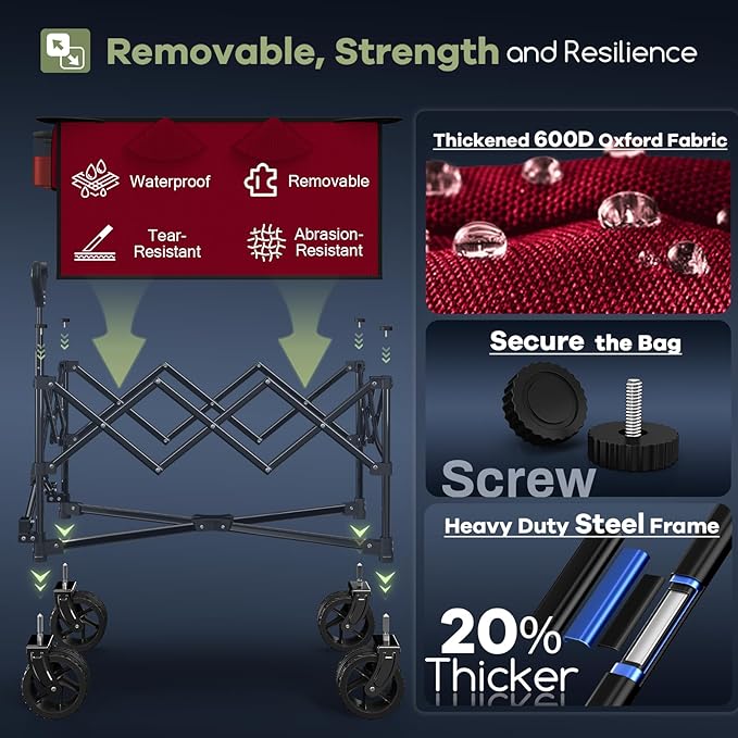 - ใ๐๐๐๐ฏ๐ฒ ๐๐ฎ๐ญ๐ฒ ๐๐๐ญ๐๐ฅ ๐ ๐ซ๐๐ฆ๐ & ๐๐ฎ๐ซ๐๐๐ฅ๐ ๐๐๐๐ ๐๐ฑ๐๐จ๐ซ๐ ๐ ๐๐๐ซ๐ข๐ใ : Built with a sturdy metal frame that supports up to 360 lbs, this foldable wagon is durable. The 600D Oxford fabric is tear-resistant, waterproof and can be easily removed for cleaning. High-quality materials ensure the wagon's long-lasting performance.