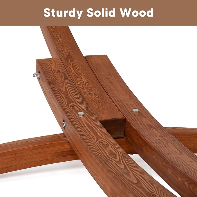 - Comfortable and stylish: The curved shape of this wooden hammock stand allows for ultimate comfort. Reveal your noble taste with this well-designed hammock set. Feel free to contact us if you have any questions during use within one year of purchase. We are always here to help