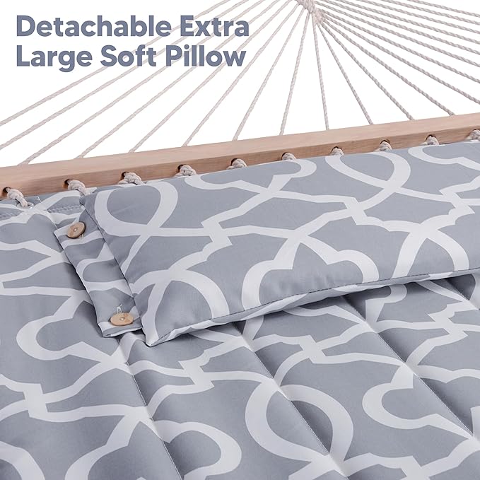 - Comfortable and Non-fading: Two-layer quilted polyester fabric with poly fiber filling which is cozier, best for camping and outdoor activities. Compared with other quilted hammocks, it will not fade after long-term usage. A polyethylene-stuffed head pillow offers superior comfort