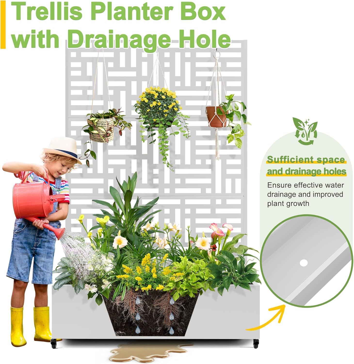 - 【Planter Box with Drainage Hole】Designed with a 12” deep planting bed and equipped with drainage holes at the bottom, this planter box provides ample space for healthy plant growth, ensuring excess water can escape and preventing waterlogging.