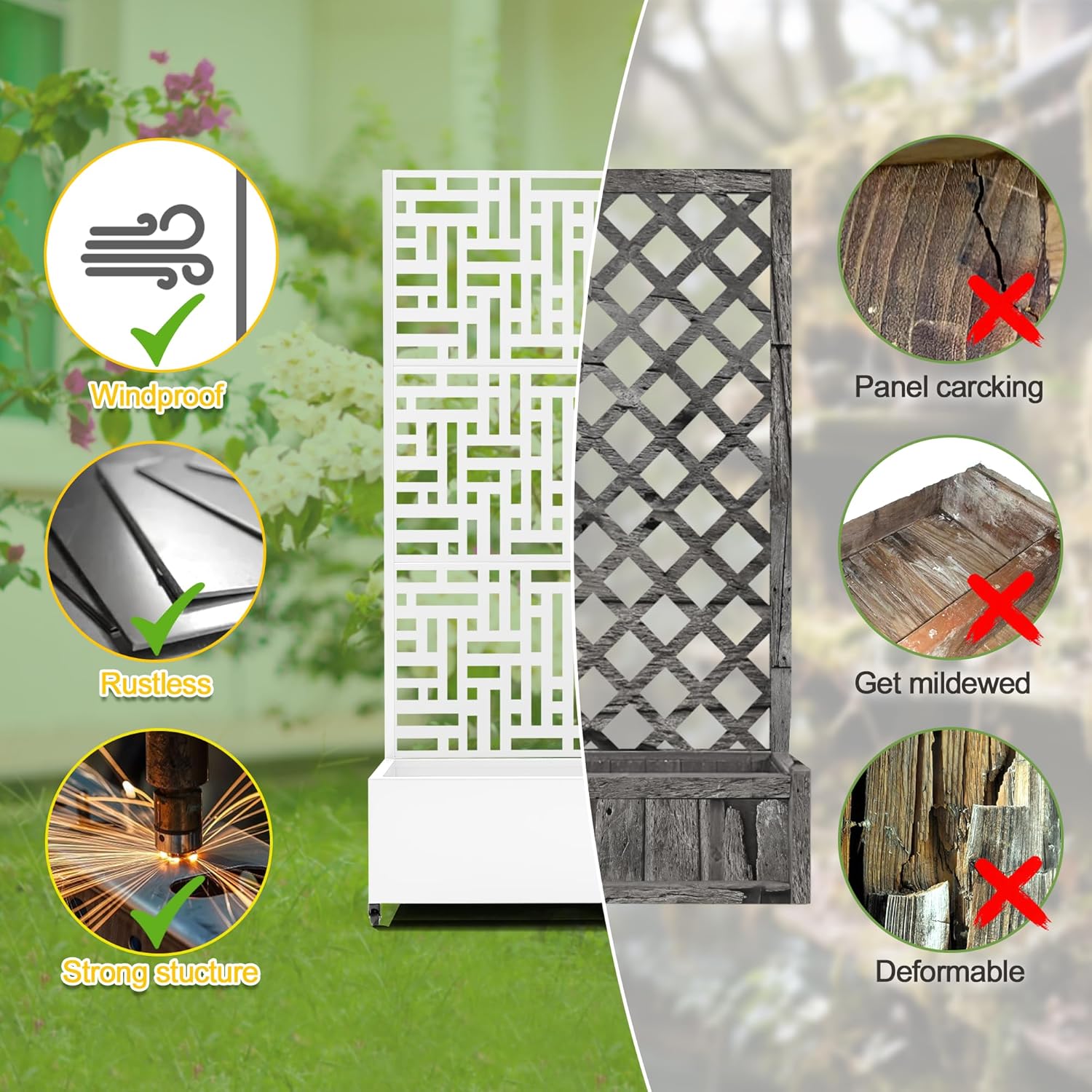 - 【Space-Saving Design】The combination of the planter box and trellis saves space while offering an attractive garden bed. This space-efficient solution is ideal for gardening enthusiasts facing space constraints, allowing them to cultivate beautiful gardens even in limited areas.