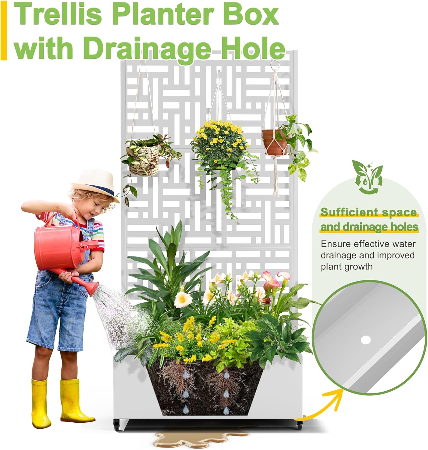 - 【Planter Box with Drainage Hole】Designed with a 12” deep planting bed and equipped with drainage holes at the bottom, this planter box provides ample space for healthy plant growth, ensuring excess water can escape and preventing waterlogging.