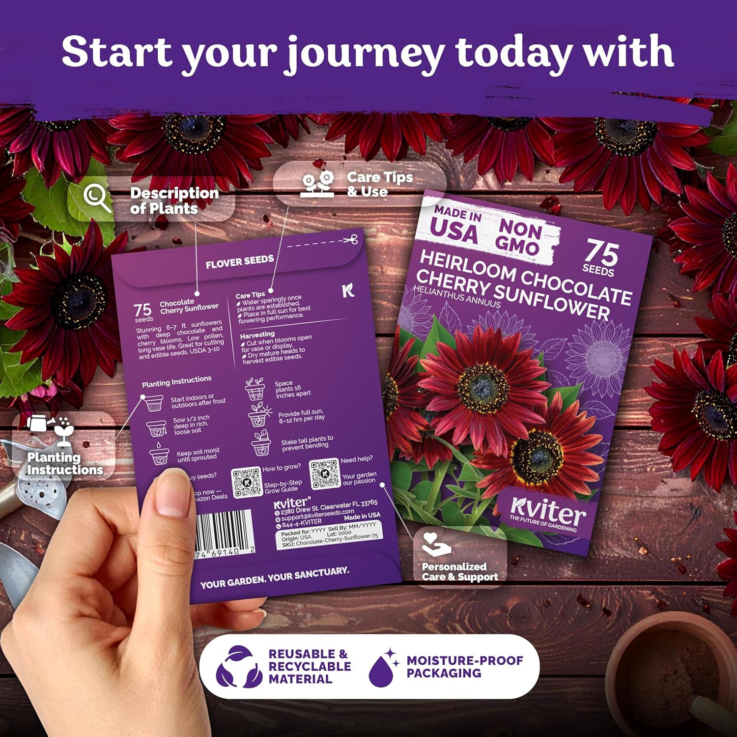 - Easy Sowing & Care: Plant chocolate cherry sunflower seeds 1/2 in deep, 16 in apart in well-drained soil; sprouts in 1-2 weeks and flourish with watering—ideal sunflower seeds to grow in flower gardens.