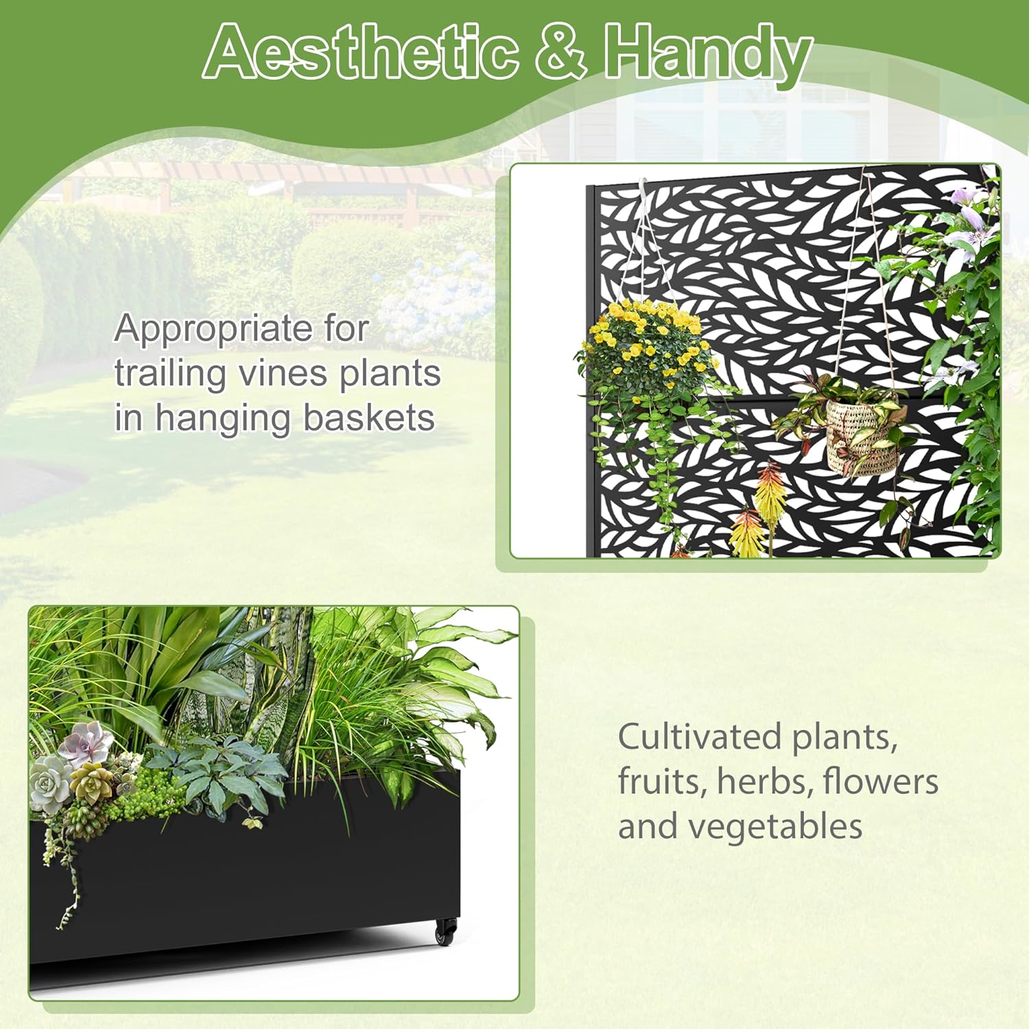 - Suitable for Various Environments This planter with trellis is ideal for gardens, balconies, patios, and greenhouses, perfect for growing flowers, fruits, vegetables, and herbs. It also serves as an privacy planters for patio, creating a tranquil space. Ideal for beautifying your area or enhancing privacy.