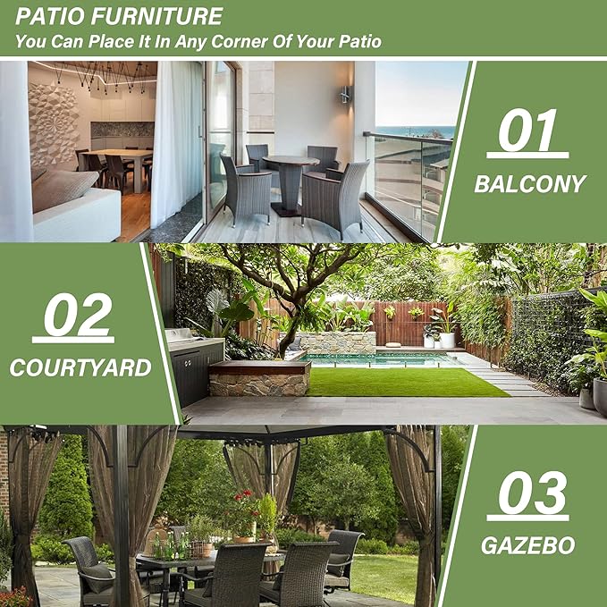 - Easy Assembly: Every wicker outdoor patio table and chair set comes with detailed installation instructions, parts and accessories are labeled with numbers. Two people can assemble this outdoor dining set for 10 in about two hours