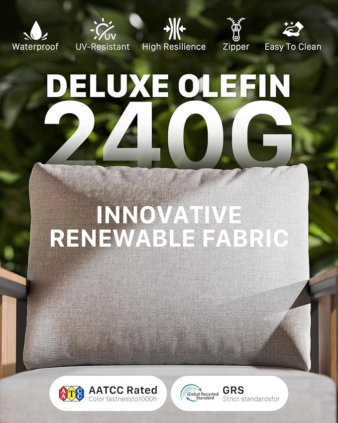 - 【Removable & Machine-Washable Cushions】 The included cushions for this contemporary patio furniture set feature 5.5” high-density foam for superior comfort and stability. Covers are detachable and machine-washable, ensuring easy maintenance. Paired with a moisture-resistant imitation wood coffee table, this patio conversation sets combines practicality with modern style