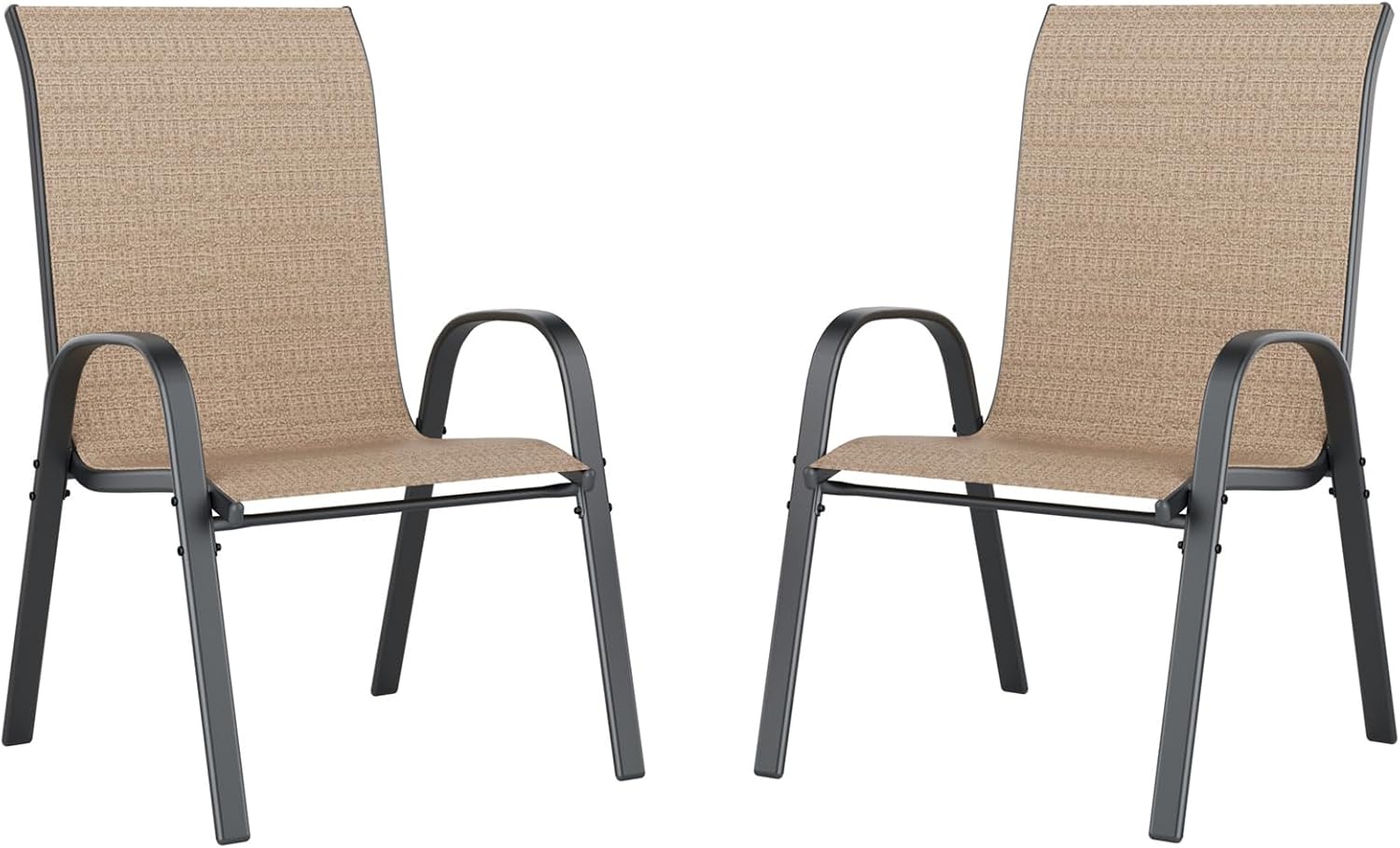 UDPATIO Patio Chairs Set of 2, Stackable Outdoor Dining Chairs with High Back, Breathable Textilene Fabric Outdoor Chair All Weather, 350LBS Capacity for Garden, Backyard (Brown)