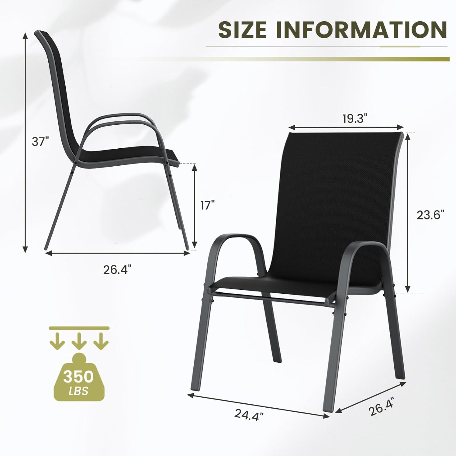 UDPATIO Patio Chairs Set of 4, Stackable Outdoor Dining Chairs with High Back, Breathable Textilene Fabric Outdoor Chair All Weather, 350LBS Capacity for Garden, Backyard (Black)
