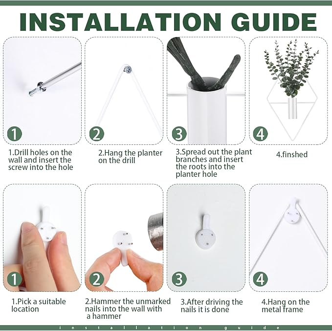 - Simple and Generous: the geometric wall hanging vase is designed in triangle and rhombus shape, coordinate with classic white color, the collision of metal iron and flower art, its simple design let it look elegant and generous, and is suitable for a variety of decoration styles, such as modern style, minimalist style, rustic style and more