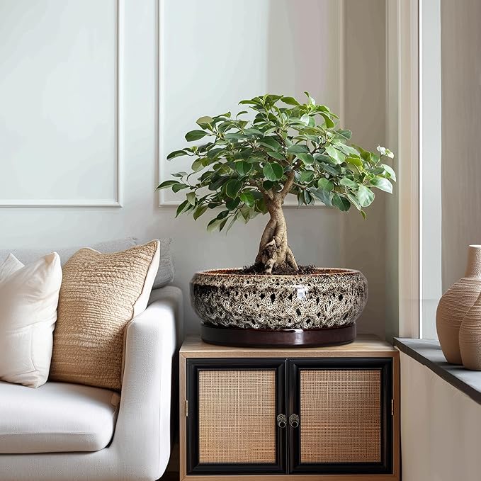 - Ceramic Glazed Design: This bonsai pots are fired at high temperatures with a refined glazed finish, offering durability and an elegant look that enhances your plants(ONLY CERAMIC PLANTER IS INCLUDED, NOT PLANTS INCLUDED)