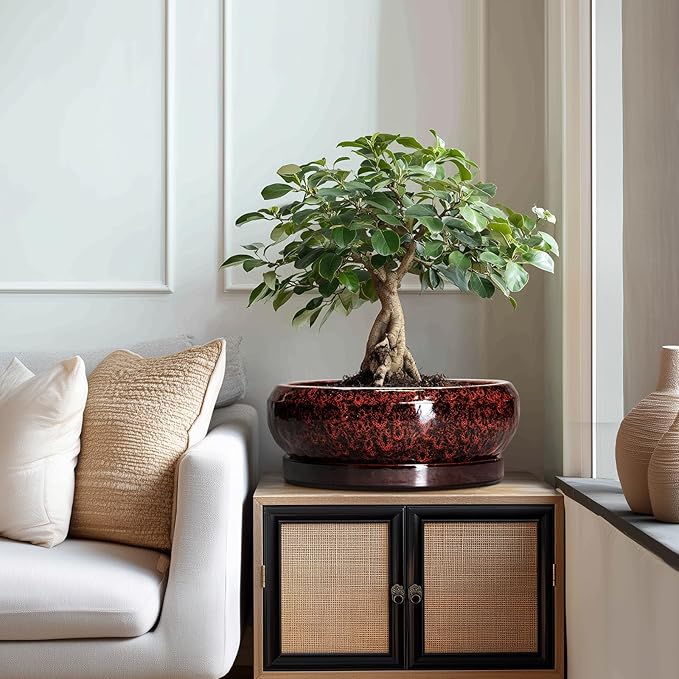 - Ceramic Glazed Design: This bonsai tree pots are fired at high temperatures with a refined glazed finish, offering durability and an elegant look that enhances your plants(ONLY CERAMIC PLANTER IS INCLUDED, NOT PLANTS INCLUDED)