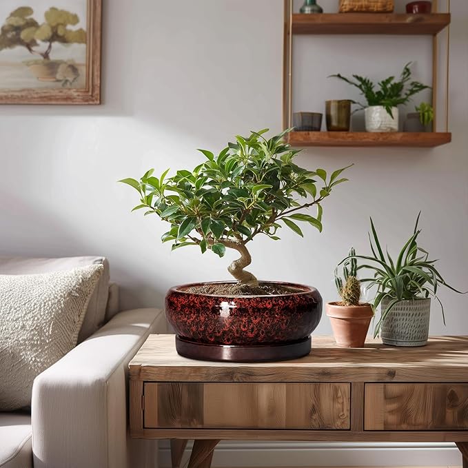 - Ceramic Glazed Design: This bonsai pots are fired at high temperatures with a refined glazed finish, offering durability and an elegant look that enhances your plants(ONLY CERAMIC PLANTER IS INCLUDED, NOT PLANTS INCLUDED)