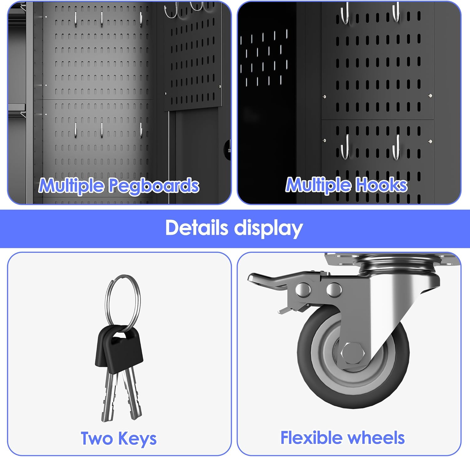 - [ADJUSTABLE SHELVES] The tool cabinet has 4 adjustable shelves. The shelves can be adjusted up and down to the desired position for your household items, tools, and other items. Compared with common metal cabinets, our garage cabinets are more cost-effective!