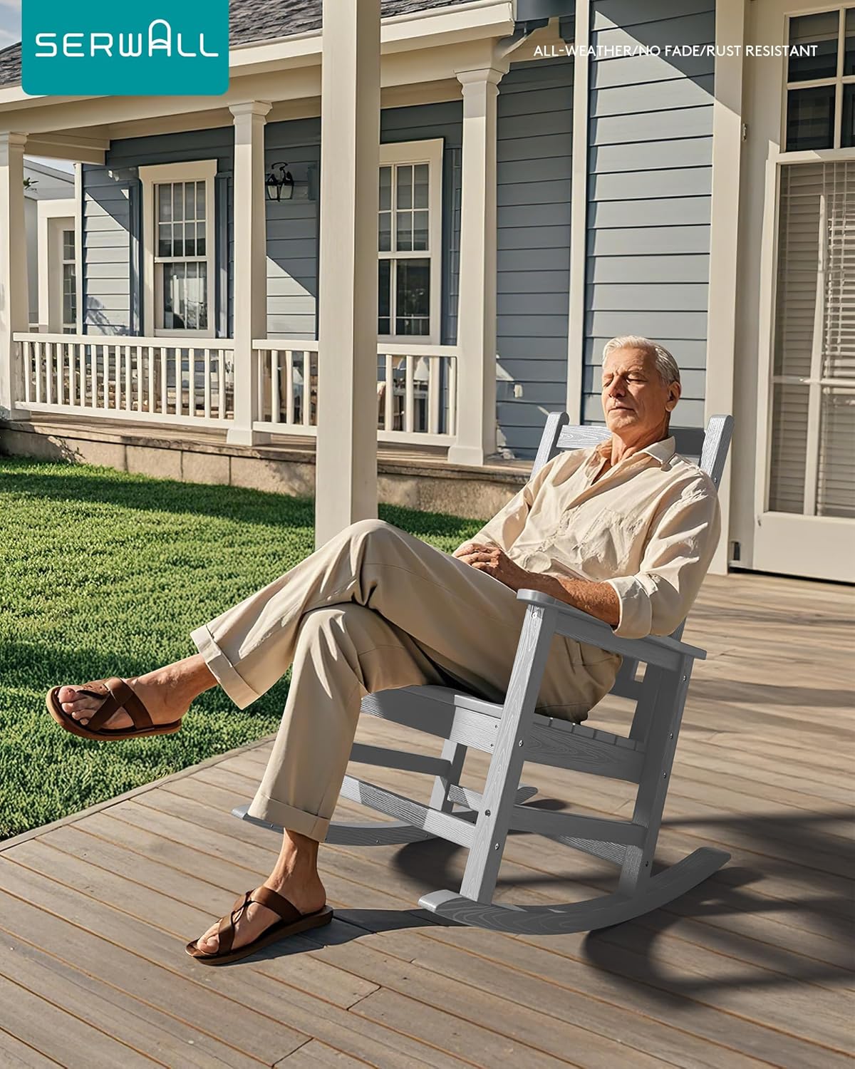 - Details Make It Successful: This porch rocker features an ergonomic curved backrest—unlike traditional straight-back designs—providing superior reclining comfort. With wide armrests and a contoured seat, the SERWALL rocking chair alleviates fatigue. (Tip: Pair it with our cushion [ASIN:B0D7Q1V8ZC] for added comfort.)
