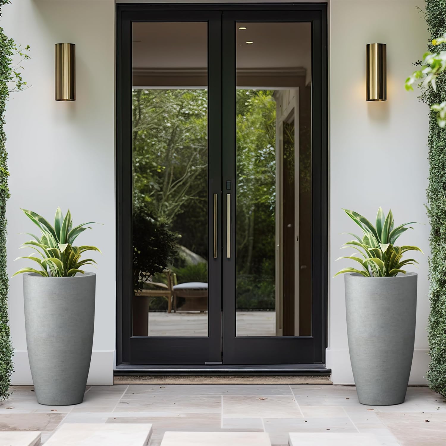 Kante 23.6" H Natural Concrete Tall Planters (Set of 2), Large Outdoor Indoor Decorative Plant Pots with Drainage Hole and Rubber Plug, Modern Style for Home and Garden